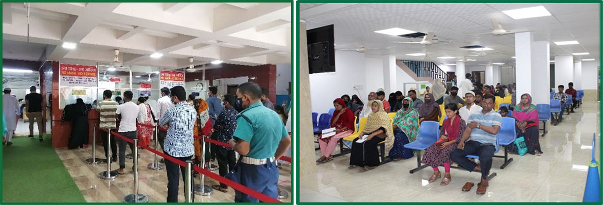 An air-conditioned Out Patient Department equipped with all modern instruments and equipment started functioning to treat the ear, nose and throat patients of all ages giving special preference to children, where patient of all ages with Ear, Nose & Throat diseases are treated with preference given to the children. Out-patient department has got the provisions for simultaneous examination of 12-15 patients at a time. An average of 300-400 patients seeks treatment and advice in the out-patient department per day. 25 experienced and trained (at home and abroad) ENT Specialists are engaged to treat the patient in out-patient department.